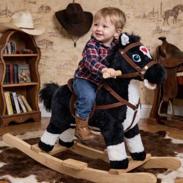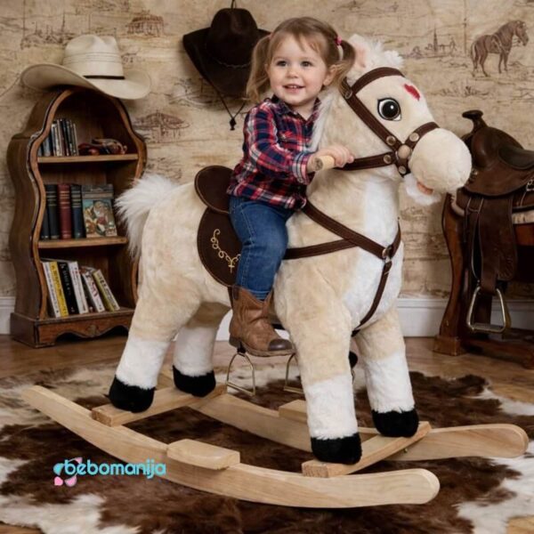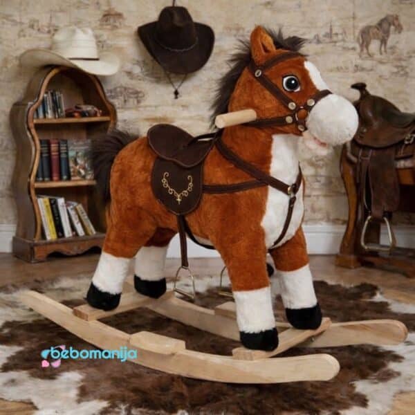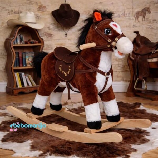 Postoji i muzički drveni konjic klackalica koji predstavlja pravo zadovoljstvo za vašu bebu. Klikom na uvo ovog konjića, on ispušta zvuke, ali i otvara usta i maše repom.