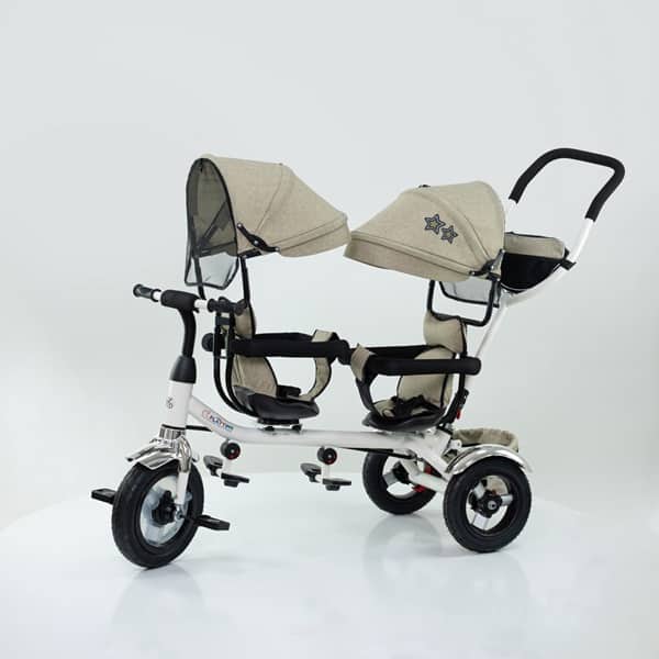 Ono što najviše odlikuje tricikl za blizance jeste jaka metalna konstrukcija, koja može da podnese veliko opterećenje. Plastika koja se koristi uz samu konstrukciju tricikla za blizance je otporna na sve atmosferske prilike.