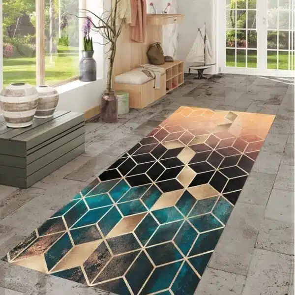 Staza sa gumenom podlogom 80x160cm – 3D kocke Zeleno-zlatni, SS-015