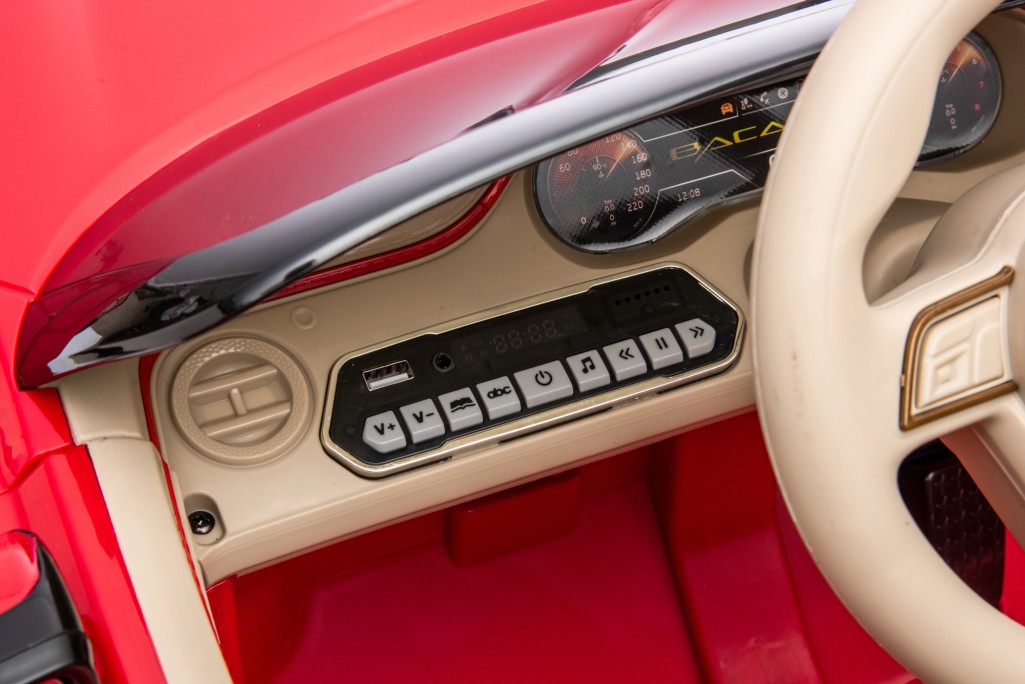 Ovaj licencirani BENTLEY BACALAR u crvenoj boji pruža jedinstveno iskustvo vožnje za tvoje dete: