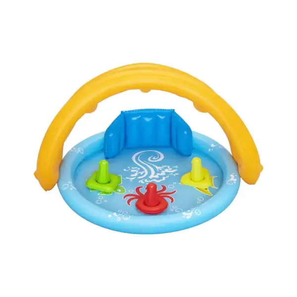 Bestway bazen sa krovom K52568, atraktivnog dizajna i zanimljivih detalja, uključujući i tendu kao zaštitu od sunca i UV zračenja. Tenda se po potrebni skida, pa se bazen može koristiti i u kući ili stanu, jer je malih dimenzija.
