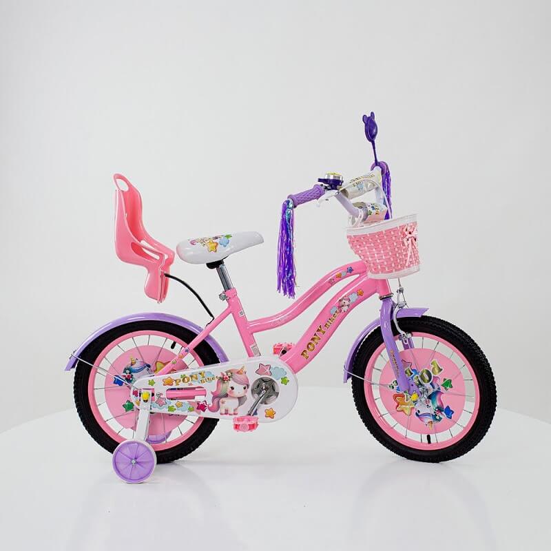 Bicikl 723-Pony Bikes 16” je preslatka bicikla roze-ljubičaste boje  namenjena devojčicama. Kvalitetne i stabilne konstrukcije sa pomoćnim točkićima i pažljivo osmišljenim detaljima pružiće sigurnost i samopouzdanje dok se voze.