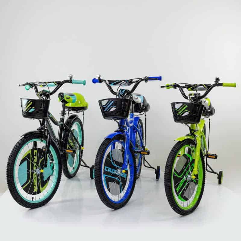 Bicikl Crosser 724-20 crno-zeleni za decu od 5-8 godina i visine 120-130 cm. Ima pomoćne točkove koji se mogu skinuti, prema uzrastu i potrebama deteta, tako da je ovo idealan bicikl za vežbanje ravnoteže.
