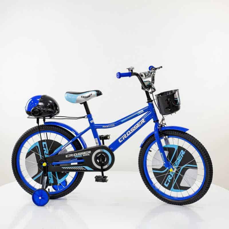 Bicikl Crosser 724-20 Plavi za decu od 5-8 godina i visine 120-130 cm. Ima pomoćne točkove koji se mogu skinuti, prema uzrastu i potrebama deteta, tako da je ovo idealan bicikl za vežbanje ravnoteže.