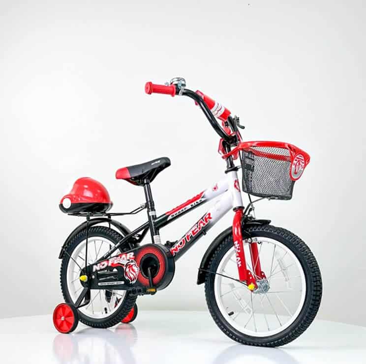 Bicikl 16“ No Fear crveni je bicikl šarenog i privlačnog dizajna za dečake i devojčice, veličine 16″. Namenjen za uzrast od 4 do 7 godina i visini deteta od 105-125cm. Ima pomoćne točkove koji se mogu skinuti, prema uzrastu i potrebama deteta. Sadrži korpu za dečije sitnice kao i sedište za omiljenu igračku.