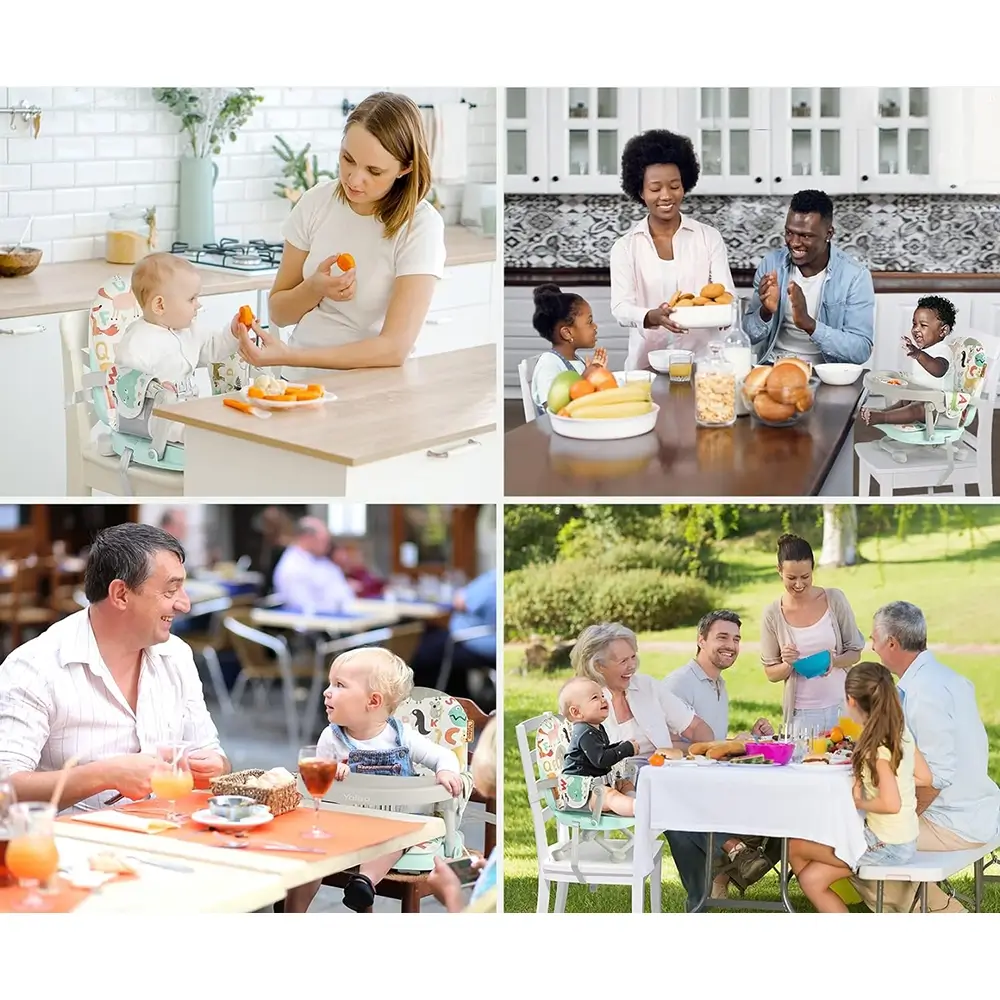 Podešava se u četiri položaja visine, a tu je i sigurnosni pojas sa tri tačke vezivanja. Pričvršćuje se za trpezarijsku stolicu uz pomoć sprcijalnog mehanizma, pa dete obeduje za trpezarijskim stolom zajedno sa ostalim članovima porodice.
