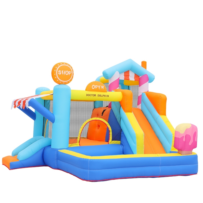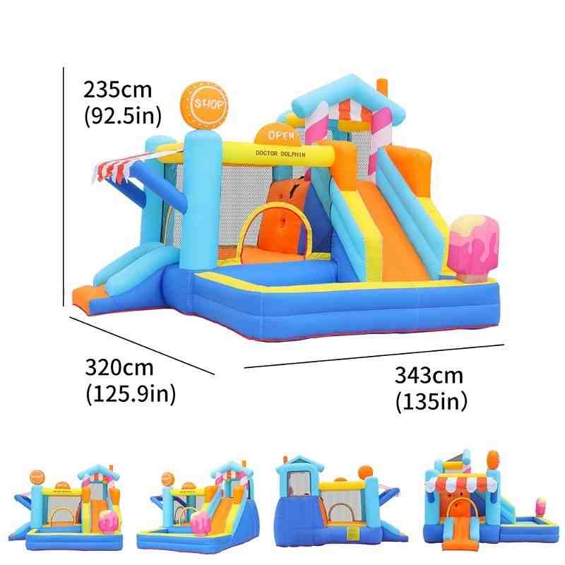 Dečija naduvavajuća igraonica „Slatka Kuća & Prodavnica“ osmišljena je da na prvi pogled osvoji dečija srca, a roditeljima i organizatorima pruži sigurnost, kvalitet i bezbrižnost. Razigran dizajn u obliku slatke kuće i prodavnice stvara bajkovitu atmosferu u kojoj se deca rado igraju, smeju i provode nezaboravne trenutke.