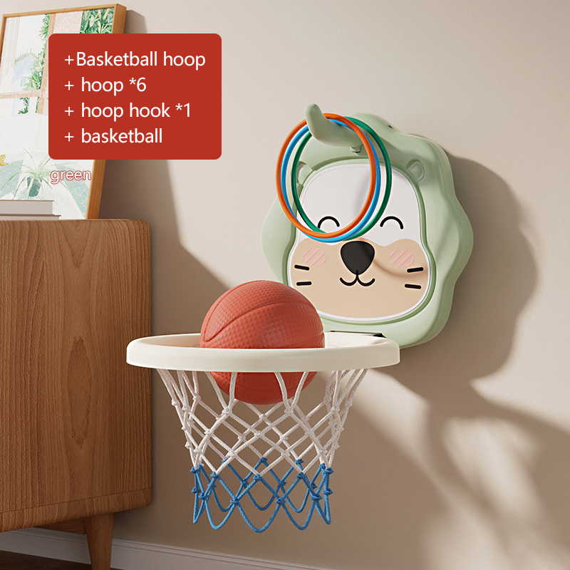 - Set poseduje: koš, košarkašku loptu, 6 obruča i klin za nabacivanje obruča