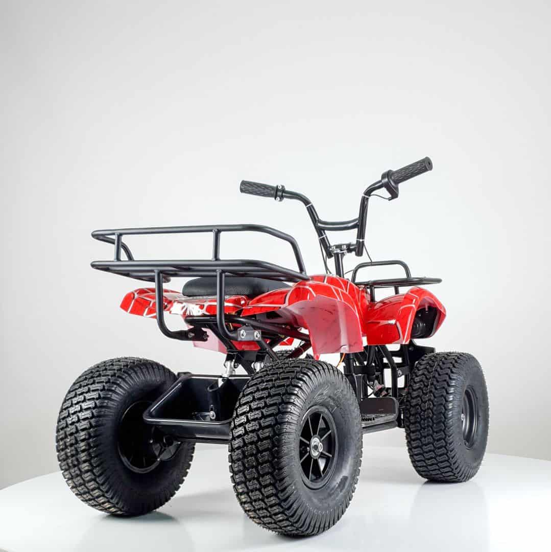 Deciji kvad na akumulator 123 svojim gabaritnim izgledom najviše podseća na kvad koji voze odrasli. Spada među najudobnije i najkvalitetnije kvadove za decu na našem tržištu jer poseduje kožno sedište i meke gume koje se pumpaju. Pored toga, gumeni točkovi imaju i amortizere čime je udobnost kvada zagarantovana bilo da mališan vozi na ravnom, reljefnom ili grubom terenu, prelazeći tako sve moguće prepreke. Na prednjim točkovima su i disk kočnice. Ovaj snažni bagi opremljen je sa dva akumulatora od 12V tako da vožnja sa njim može trajati satima. Zahvaljujući velikim dimenzijama mališan ga može voziti do polaska u školu.