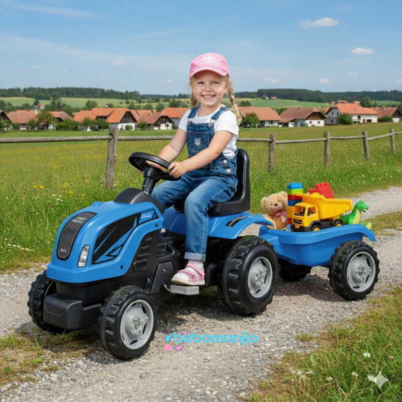 Traktor na pedale MMX sa prikolicom – plavi, model 956