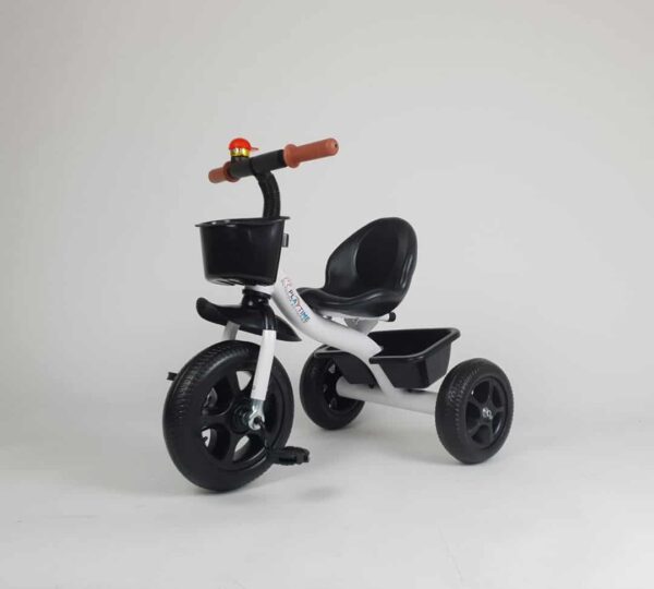 Klasični dečiji tricikl veselih boja koji i tate vole, posebno dok sa ponosom gledaju svog naslednika kako samostalno vozi svoj omiljeni “trotočkaš”. Točkovi gumenog EVA punjenja garantuju udobnu vožnju i po neravnim terenima. Nosivost do 35kg omogućava upotrebu od 2 do 5 godina. Ovaj tricikl za decu izrađuje se u više dezena pa roditelji imaju „slatke muke“ pri izboru.