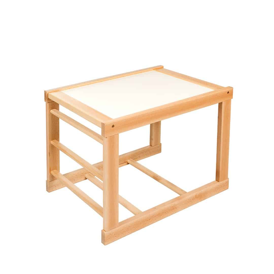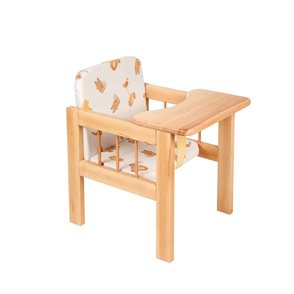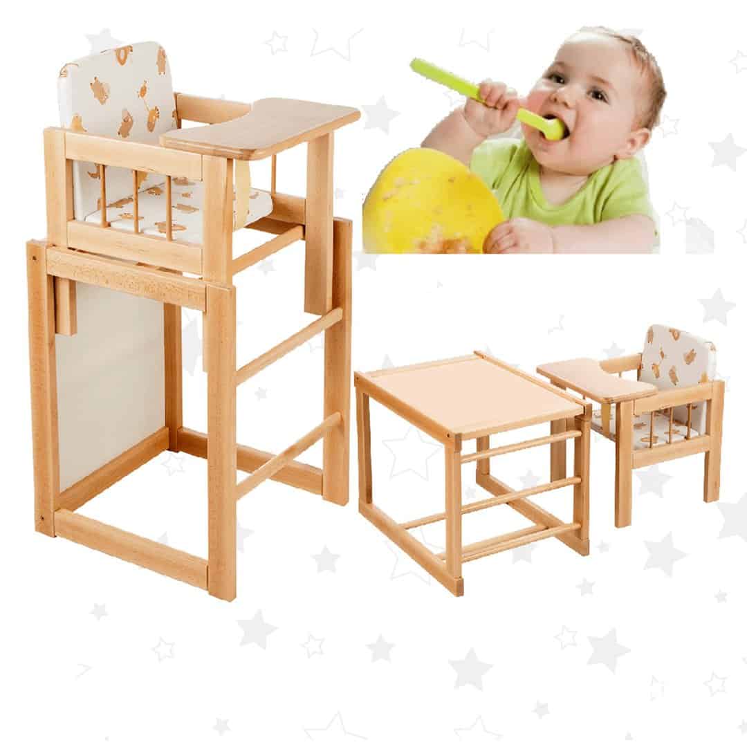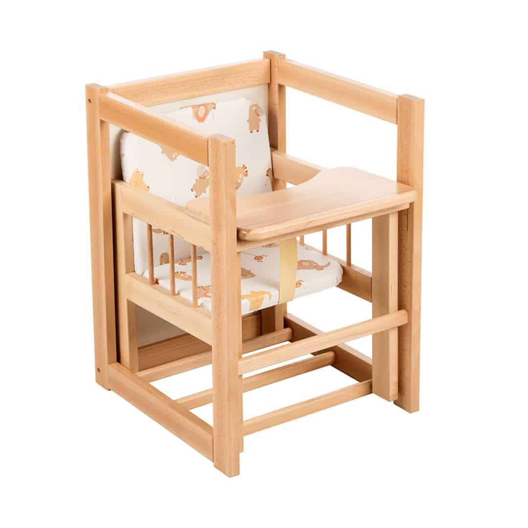 - U početku se koristi kao klasična hranilica jer je u visini trpezarijskog stola, a kasnije se postolje okreće i transformiše u dečiji stočić, a tacna se skida i ostaje stolica