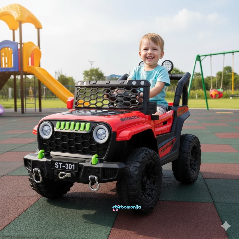 Njegovi izdržljivi točkovi sa zaštitnim slojem sprečavaju habanje, omogućavajući sigurnu i stabilnu vožnju. Snažan, moderan i pouzdan, TS-301 pruža osećaj prave terenske avanture i nezaboravne trenutke za svako dete!