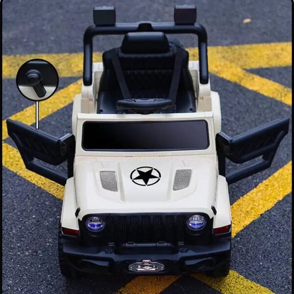 Prvi džip mališana čiji simpatičan dizajn oduševljava i roditelje. Mališani se u njemu voze preko daljinskog ili samostalnom aktivnošću. Odlikuju ga odlične performanse: LED svetla i priključci za MP3 i USB.
