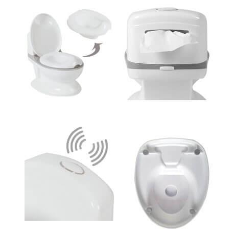 Pritiskom na dugme na vrhu „kotlića“ reprodukuje zvuk puštanja vode u wc šolju