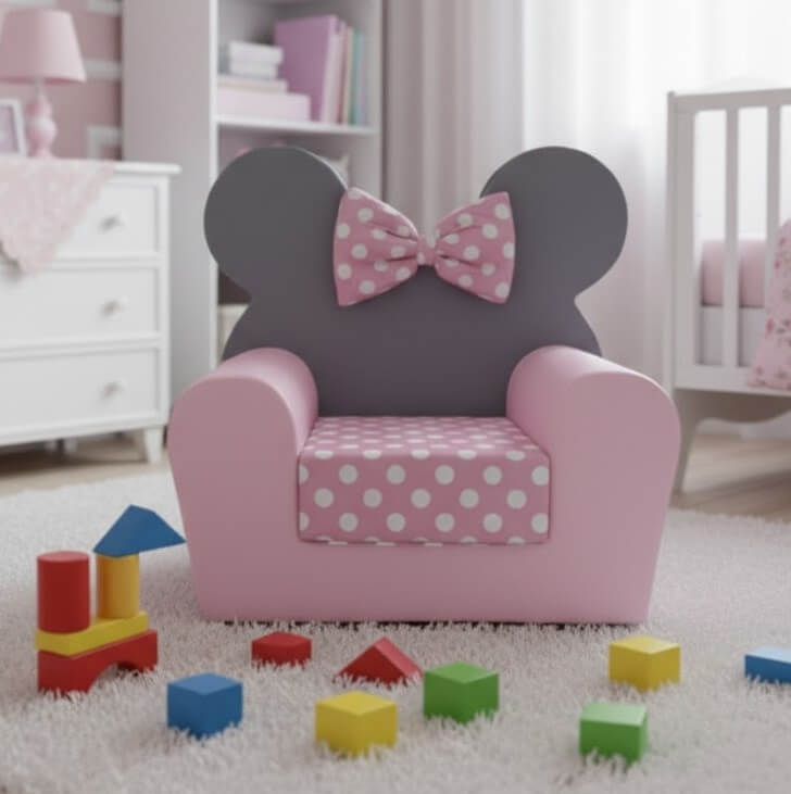 Curice će zavoleti ovu neodoljivu fotelju koja imitira izgled popularne junakinje Mini. Provodiće vreme u fotelji, jer se u njoj odlično zabavljaju.
