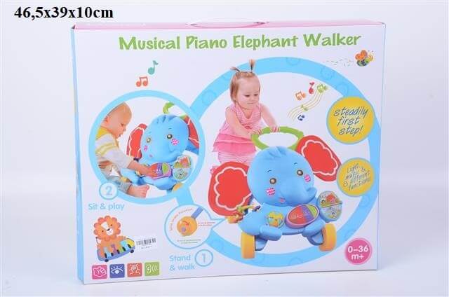 Višenamenska hodalica-guralica sa motivom slona dizajnirana je da zabavi mališane i pruži im sigurnu podršku pri prvim koracima. Opremljena je pomičnim delovima koji služe kao interaktivne igračke, podstičući radoznalost i razvoj fine motorike.