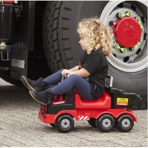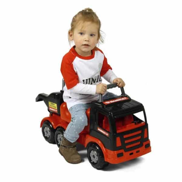 Uz ovakvu guralicu mališani se fizički razvijaju i pripremaju za prve korake, ali i zabavljaju napolju – u dvorištu, pesku i sl. Sadrži prikolicu za kipovanje kojom mališan može prenositi sve što poželi – pesak, kamenčiće, lišće, grančice ili svoje igračke. Ovaj kamion omogućuje pravu avanturu i istraživanje neposredne okoline.