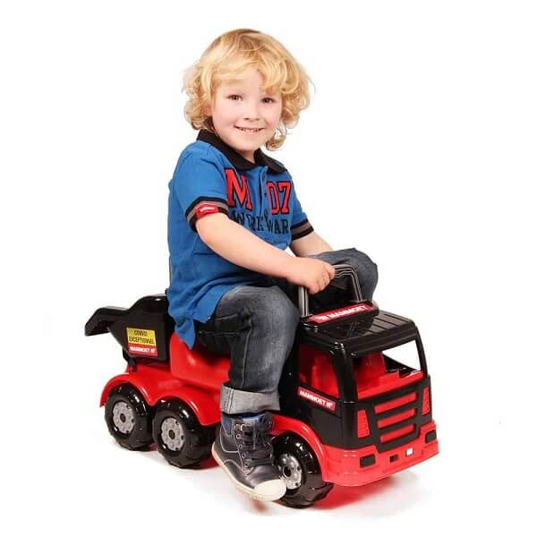 Kamion guralica nosivosti do 50kg za odličnu zabavu i razvoj motorike mališana. Može biti tako i guralica i kamion za igru napolju. Sadrži prikolicu za kipovanje kojom može prenositi pesak, lišće, kamenčiće ili igračke.