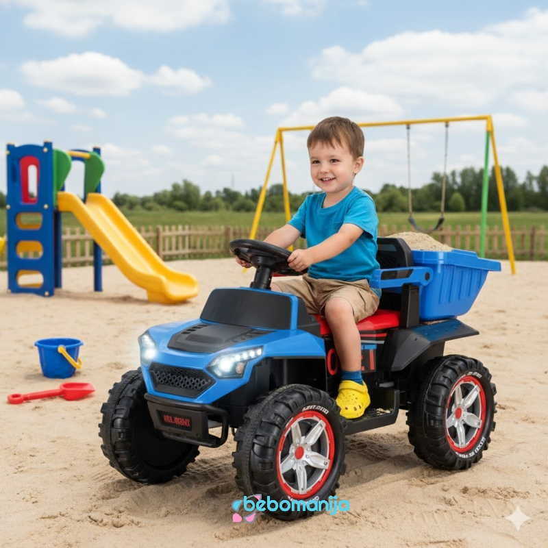 Kamion na akumulator 2214 plavi – igračka za sve male ljubitelje velikih mašina, predviđen za decu od 3 go 6 godina. Ovaj kamion je sjajan način da deca kroz igru i zabavu nauče neke osnove o automobilima i saobraćaju. A znamo da deca najbolje uče kroz igru i zabavu.