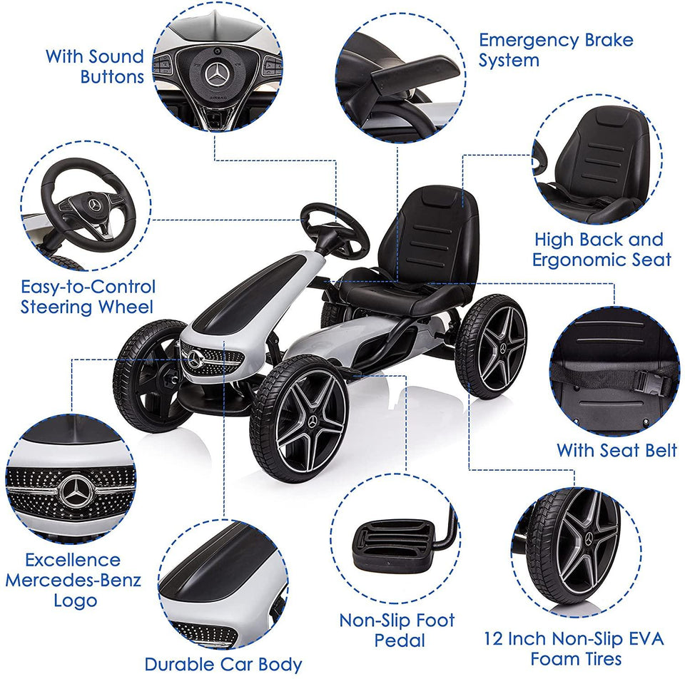 Dečiji bolid na pedale sa pravim Mercedes znakom. Doprinosi razvoju avanturističkog duha i pruža osećaj udobnosti zahvaljujući mekom sedištu i mekim gumama.
