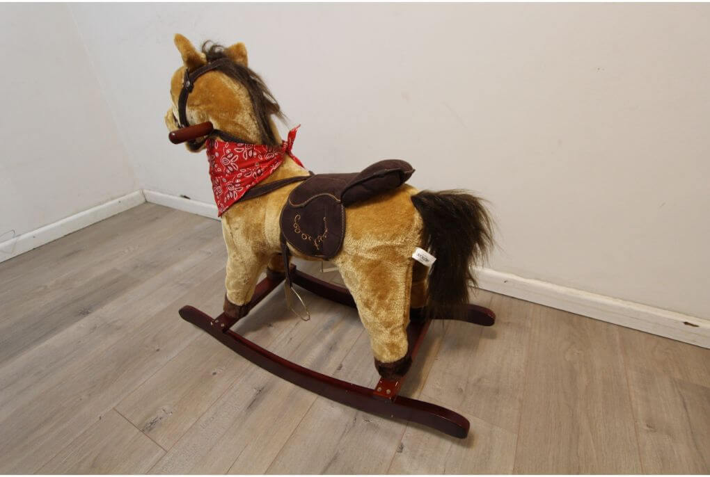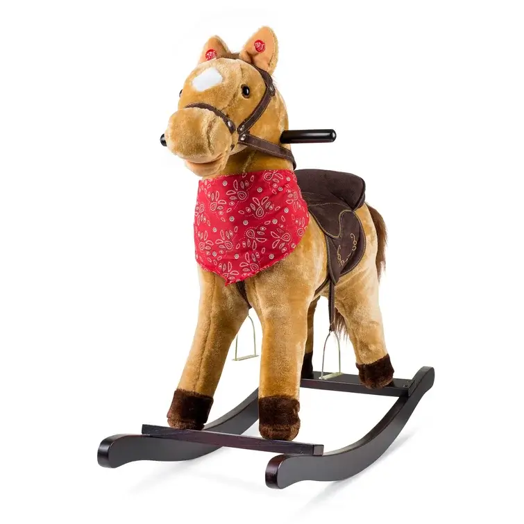 Plišani konjić klackalica opremljen uzengijama, maramom i sedlom poput pravog konja. Savršen je poklon za decu koja vole konje, pružajući im sate neograničene zabave, potičući kreativnost i senzorne sposobnosti. Zvučni efekti još više oživljavaju klackanje stvarajući atmosferu avanture.