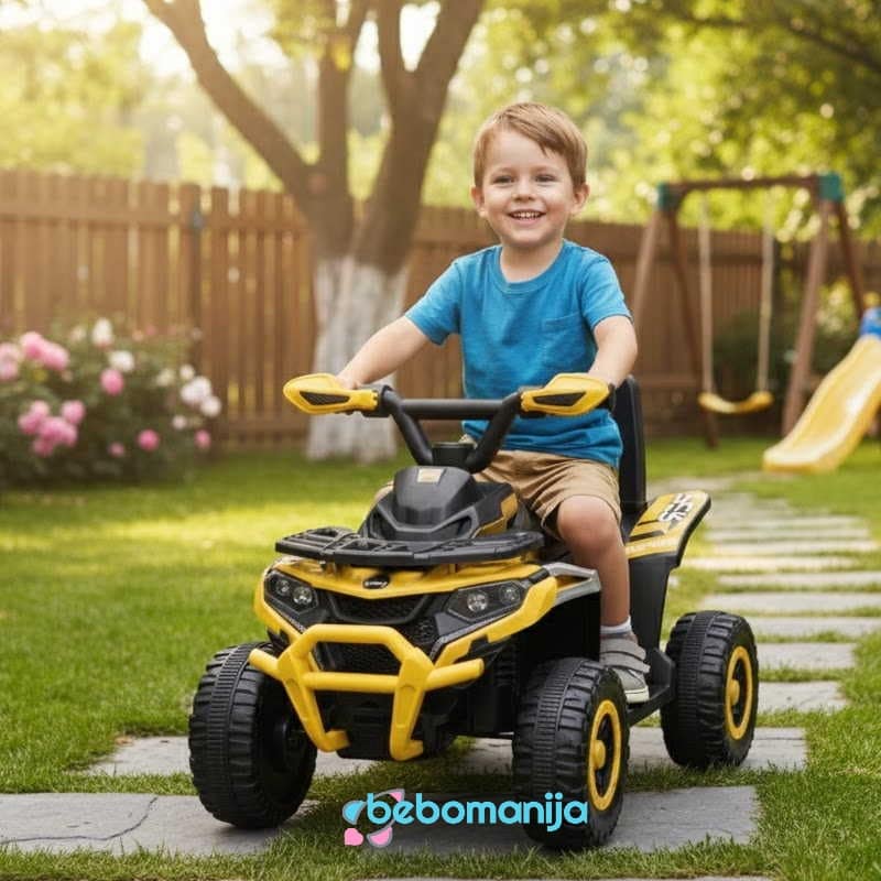 Kvad za decu SM-25003 Žuti je idealan poklon za rođendan, praznik ili neku sličnu priliku, ako dete ima između 3 i 6 godina. Pokreću ga motor i akumulator 6V, a stabilna konstrukcija garantuje bezbednu vožnju bez straha od prevrtanja.
