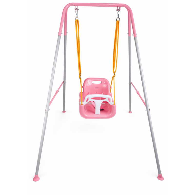 Metalna ljuljaška 846 – Roze, dizajnirana tako da pre svega bude udobna i bezbedna za vaše dete, ali i da mu pruži nezaboravne trenutke zabave. Konstrukcija je od metala, dok je sedište od čvrste PE plastike.
