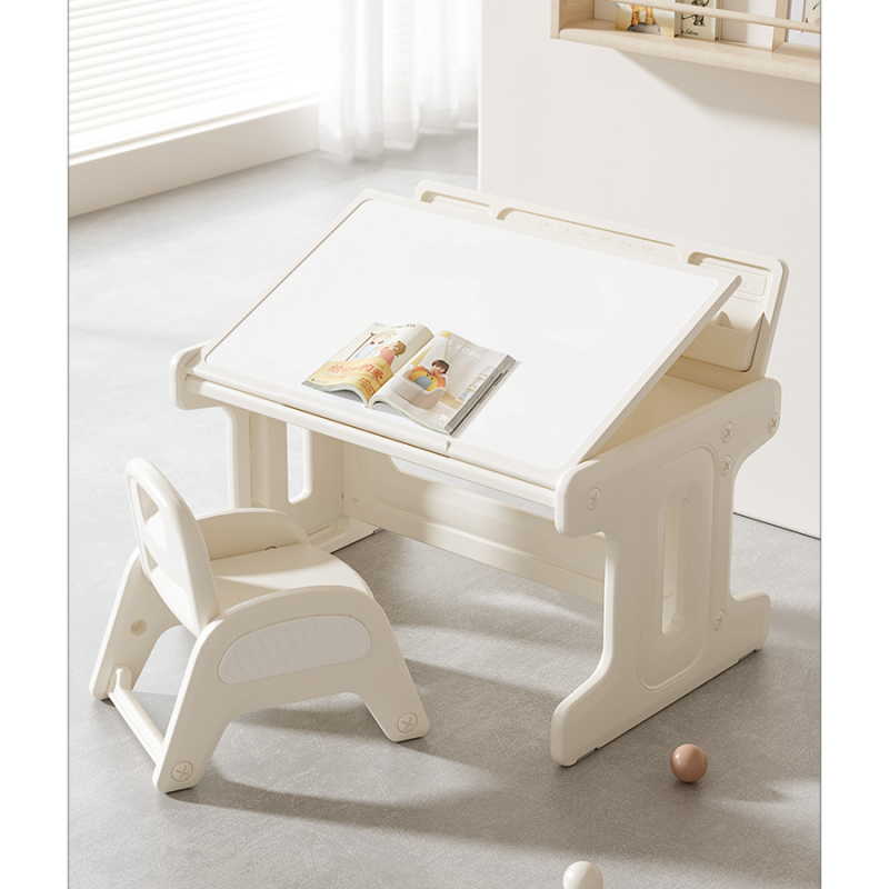 Multifunkcionalni sto i stolica PS-154 se može koristiti u dva položaja: kao običan sto ili kao tabla za pisanje/brisanje. Sve je ergonomski dizajnirano a set sadrži i olovku i sunđer tablu.