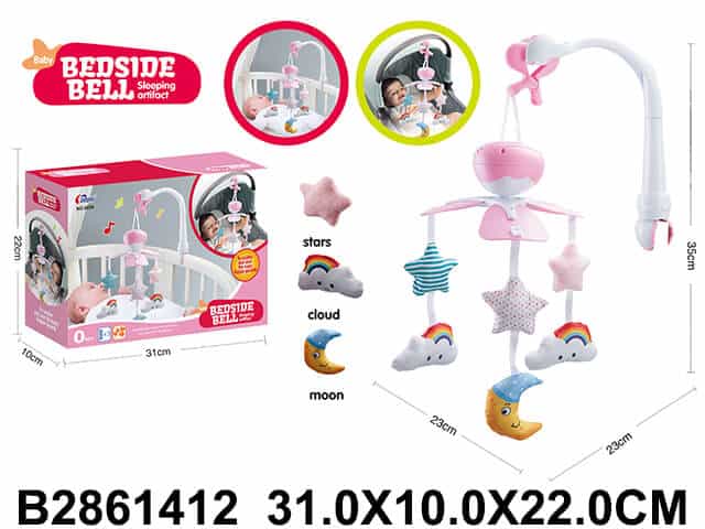 Muzička vrteška 141205k je prva igračka okačena na bebin krevetac. Emituje nežne i lepe tonove koji će opustiti bebu i pomoći joj da se uspava.