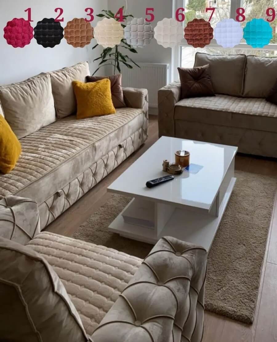 Prekrivač za garnituru Stela capuccino predstavlja set koji čine 3 prekrivača – za trosed, dvosed i fotelju. Pored toga što je izrađen da ulepša i zaštiti, ovaj set prekrivača od pliša veoma se lako održava.