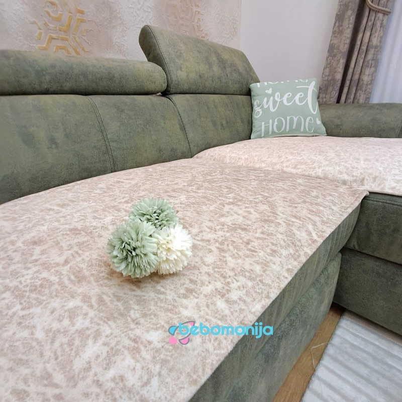 Prekrivači za garnituru Sahara – svetlo bež se sastoji od dve vrste materijala. Na donjoj polovini je specijalni, neklizajući materijal, koji drži prekrivač fiksiran za ležaj, dok je na gornjem delu prijatni pliš.