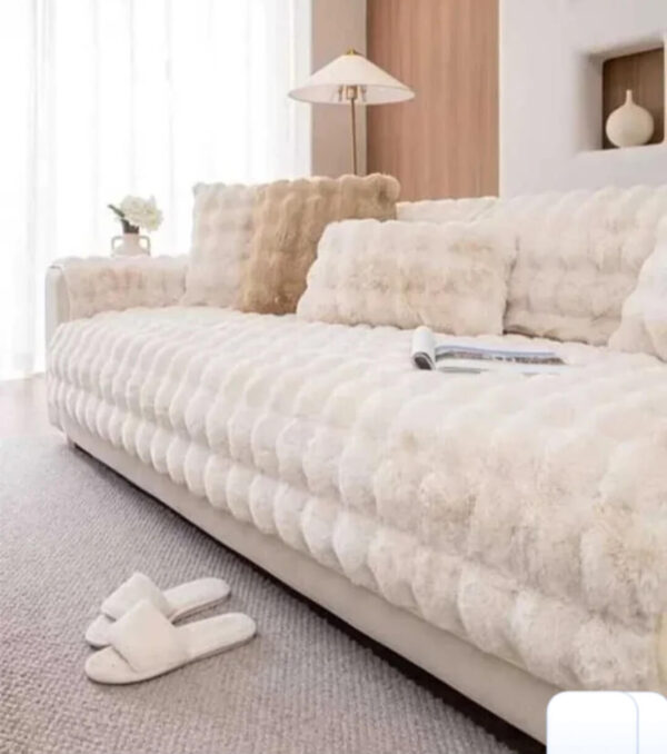 Set prekrivača Paris Dva dela bež napravljen je od nežnog pliša, koji je otporan na habanje i ne linja se. Donji deo je od protivkliznog materijala kako prekrivač ne bi spadao sa garniture.