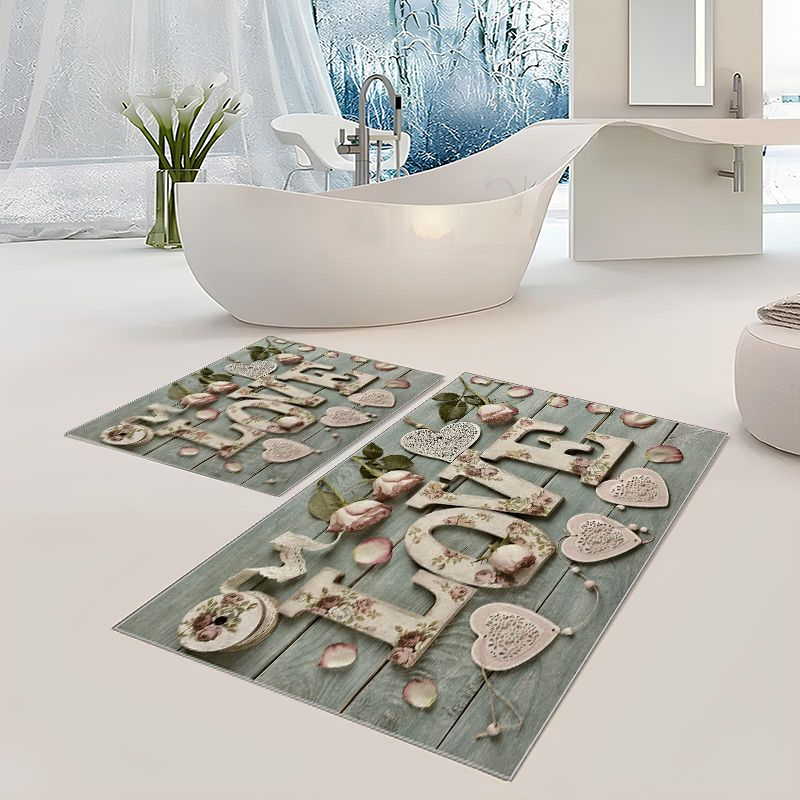 Set za kupatilo Love sivi sa gumenom podlogom 40x60cm + 60x90cm, SG-024