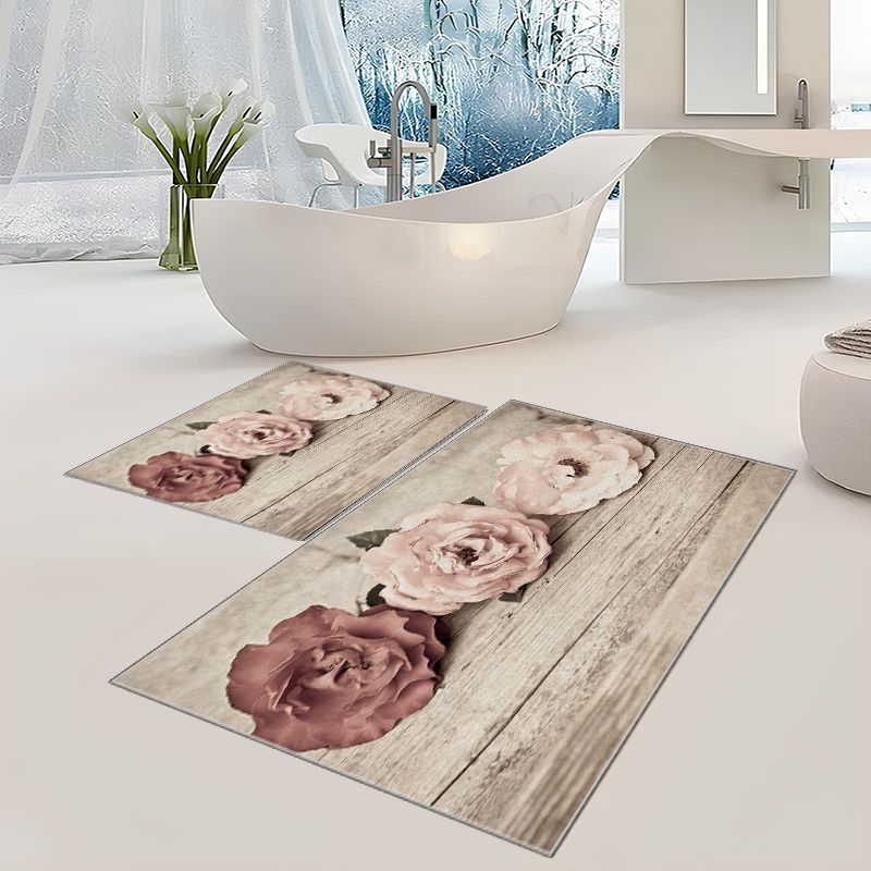Set za kupatilo Ruže sa gumenom podlogom 40x60cm + 60x90cm, SG-009
