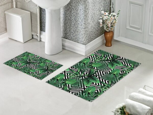 Set za kupatilo sa gumenom podlogom 40x60cm + 60x90cm – Zeleno lišće SG-039