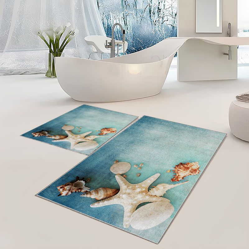 Ako želite da vaše kupatilo asocira na more i njegov svet ovaj set je pravi izbor za vas. U setu su dve staze dimenzija 60x90cm i 40x60cm.