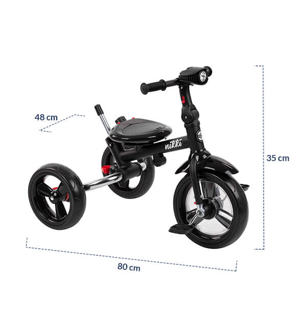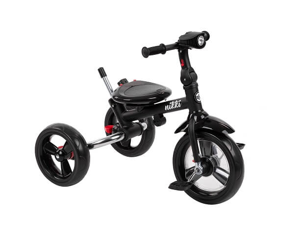 Sklopivi tricikli za decu Nikki su luksuzni tricikli za decu Kikka Boo brenda koji će oduševiti roditelje svojom funkcionalnošću. Sedište ima mogućost rotiranja prema roditelju i obaranja u položaj za spavanje. Zbog toga vrše funkciju letnjih kolica. Uz, to mogu biti i guralica i tricikl zavisno kako se koriste i kakve su potrebe mališana u vožnji.