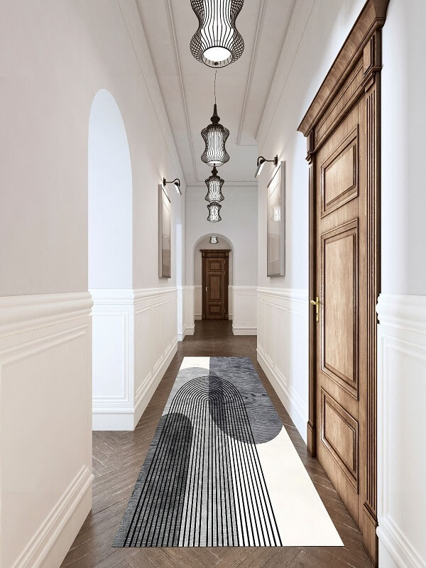 Staza modernog i veoma elegantnog dezena sa gumenom podlogom, ispunjena mekanim sunđerom, proizvedena od najfinijeg pliša mekanog na dodir. Dimenzija 80x160cm pa je možete postaviti ili u hodnik ili u sobe.