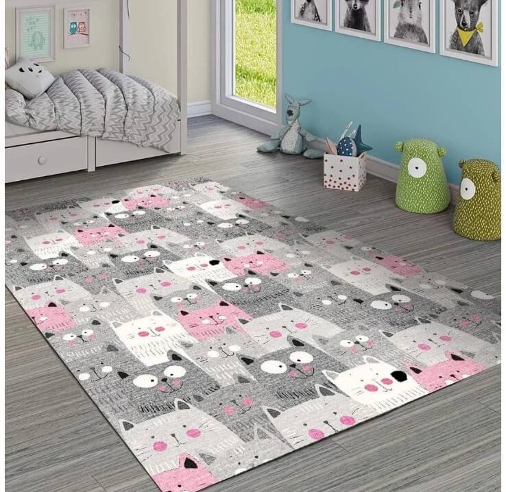 Ako vaša curica voli mace onda je ovaj tepih pravi izbor za njenu sobu. Veoma mekan i udoban za igru, poseduje podlogu na bazi gume pkja je neklizajuća i garantuje curici dobru izolaciju dok se bude igrala na podu sobe.