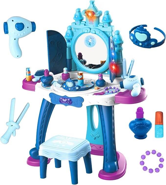 Osnovu seta čini toaletni sto sa ogledalom i stoličica. Pored toga tu su i dodaci za ulepšavanje poput fena, lakova, ruževa, češlja sl. Zahvaljujući ovom setu devojčice mogu imati zabavu koja može dugo trajati. Ova igračka je značajna i za njihovu motoriku, ali i za razvoj mašte.