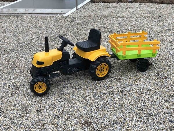 Traktor sa funkcionalnomi lako odvojivom prikolicom, realističnog dizajna pravog. U prikolici mali farmer može da vozi mlađeg brata, sestru, ili da prenosi lišće, kamenčiće, pesak ili igračke.