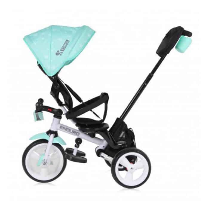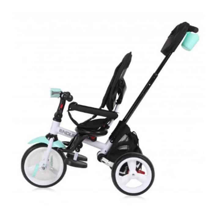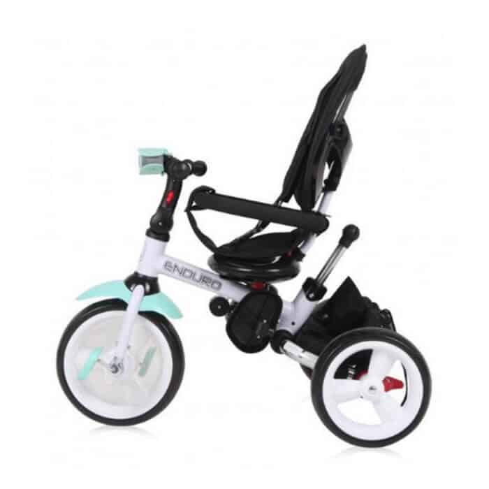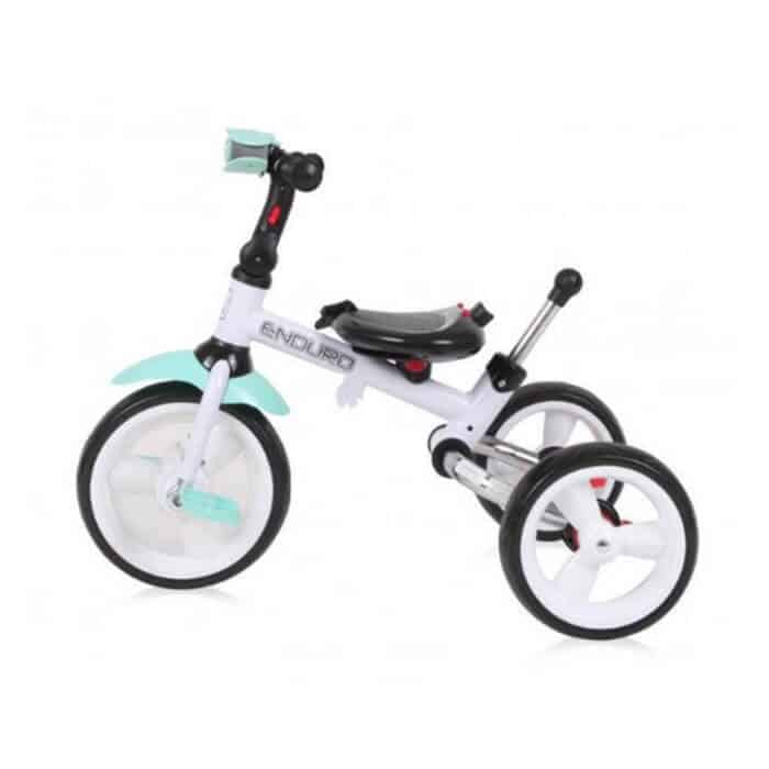 Tricikl Enduro 5u1 predstavlja ekskluzivni tricikl za decu prestižnog evropskog brenda Lorelli Bertoni. Funkcionalni je tricikl sa 5 načina korišćenja, shodno uzrastu i potrebama deteta. Mekano udobno sedište ima mogućnost rotiranja prema roditelju, ali obaranja naslona ako dete tokom voženje zadrema. Jedan je od retkih modela sa svetlom na kormanu sa 3 funkcije što je posebno značajno ako dete vozite po mraku. Udobnosti deteta u ovom modelu doprinose i točkovi od EVA pene koji lako prelaze i preko neravnog terena, a da ne probudite mališana. Dete je u ovom modelu osigurano ne samo sigurnosnim obručom, već i pojasom za vezivanje preko ramena. Kada dete malo poraste sa roditeljskog moda možete preći na mod samostalnog upravljanja, skidanjem ručice za guranje, tende i tako dobiti klasičan dečiji tricikl koji dete koristi sve do predškolskog uzrasta.