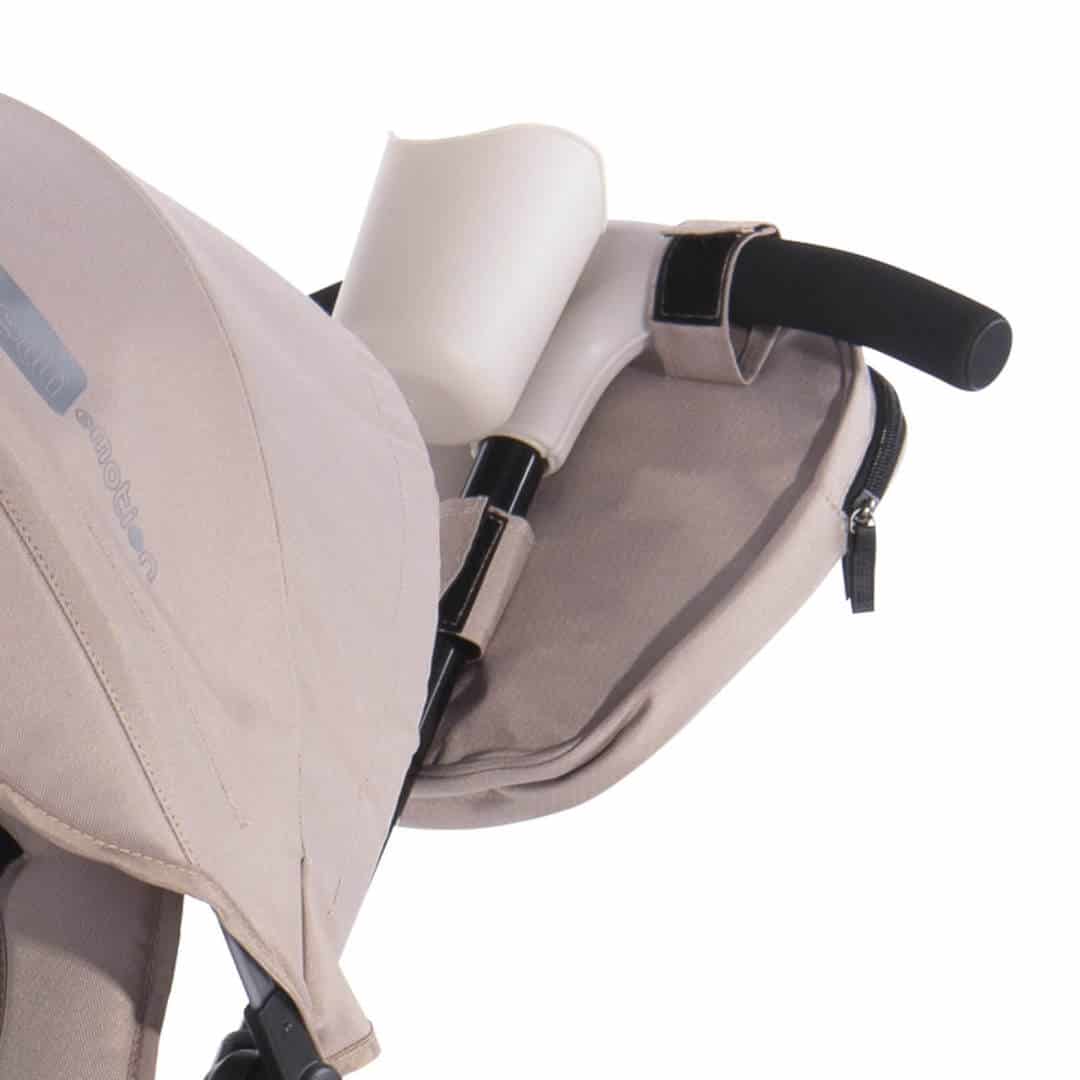 - Na ručici za guranje je i držač za flašicu i torbica-neseser za odlaganje sitnica