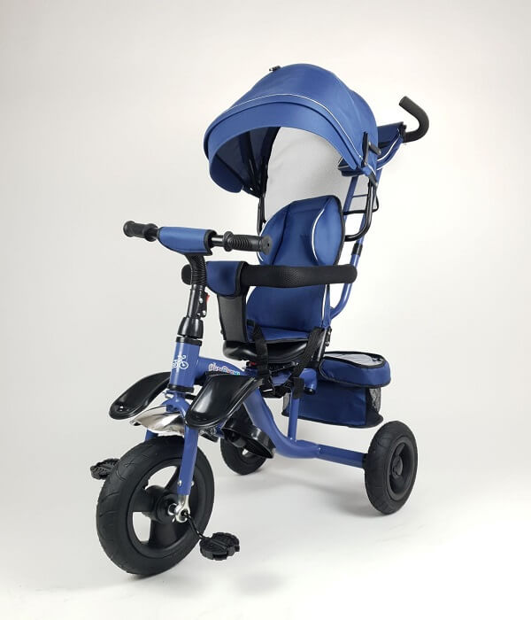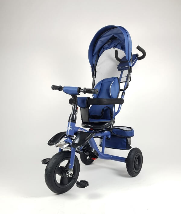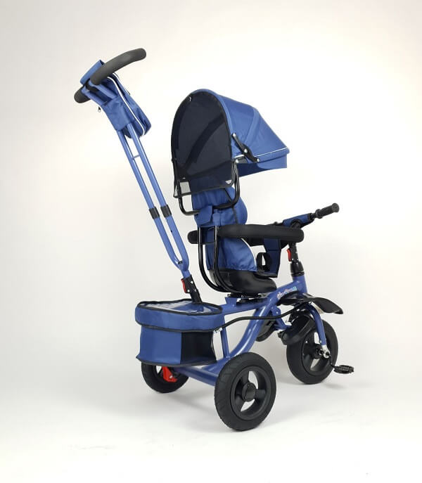 - Ovaj tricikli ima rotirajuće sedište čime se ostvaruje ne samo vizuelni kontakt deteta sa onim ko upravlja, već i adekvatna zaštita od sunčevih zraka
