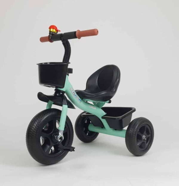 Klasični dečiji tricikl veselih boja koji i tate vole, posebno dok sa ponosom gledaju svog naslednika kako samostalno vozi svoj omiljeni “trotočkaš”. Točkovi gumenog EVA punjenja garantuju udobnu vožnju i po neravnim terenima. Nosivost do 35kg omogućava upotrebu od 2 do 5 godina. Ovaj tricikl izrađuje se u više dezena pa roditelji imaju „slatke muke“ pri izboru.