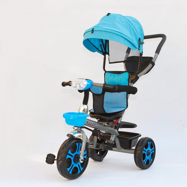 Tricikl Y-TS5540 je odlična zamena za letnja kolica jer sedište ima mogućnost rotacije ka roditelju. Ova karakteristika je važna jer omogućuje mališanu i zaštitu od sunca.