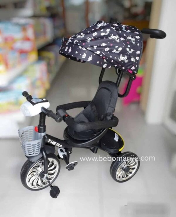 Idealan tricikl za mališane ali i za roditelje, ima zaštitni pojas, korpicu na koromanu i pruža bezbednost, a svetlo koje poseduje omogućava da mališani i duže uveče budu na otvorenom.